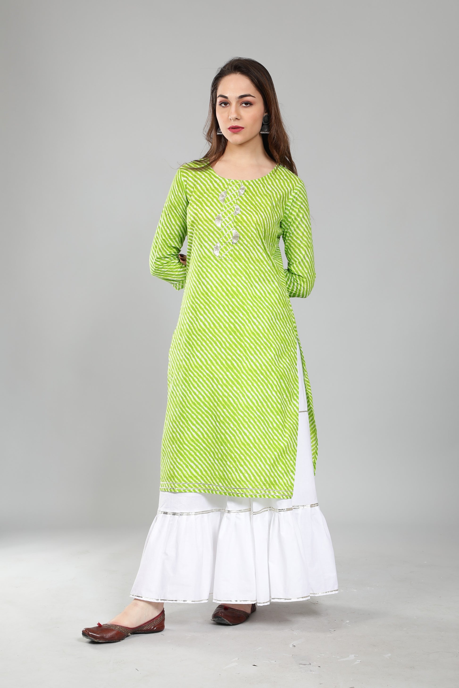 Elevate your everyday ethnic style with this elegant Pure Cotton Leheria Kurti, designed for effortless comfort and timeless appeal. Crafted from 100% breathable cotton, this kurti keeps you cool and comfortable all day long, making it perfect for daily wear, office outings, casual gatherings, and festive occasions.
