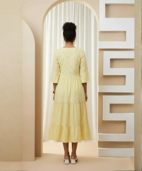 Perfect for women who love timeless ethnic wear with a modern touch, this yellow cotton dress offers all-day ease without compromising on elegance.